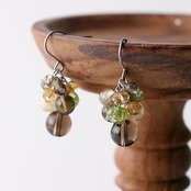 スモーキークォーツ、ルチルクォーツ、ペリドット、シトリンのピアス。