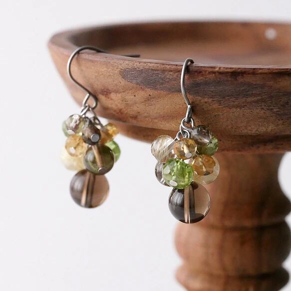 スモーキークォーツ ルチルクォーツ ペリドット シトリン ピアス or イヤリング