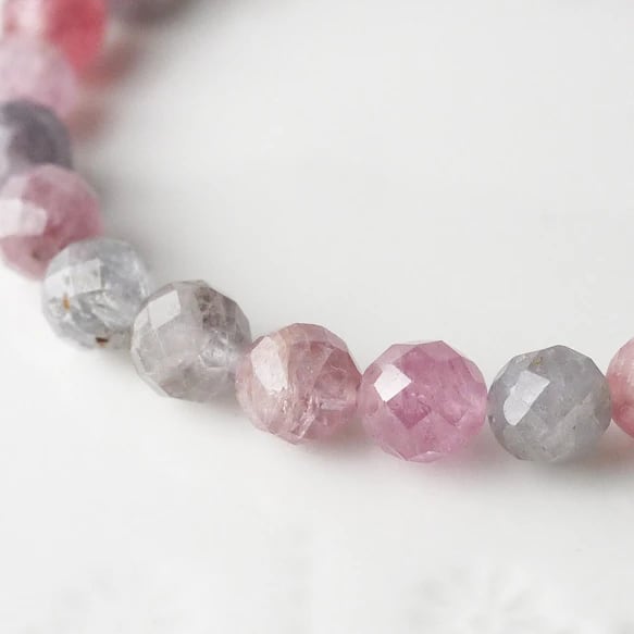 淡いかすみカラーで優しい印象のスピネルブレスレット♪