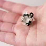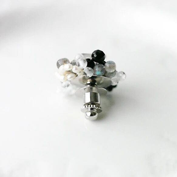 【ちいさな花束ブローチ】1点もの・水晶・ラブラドライト・オニキス・ヘマタイト・淡水真珠 ブローチ